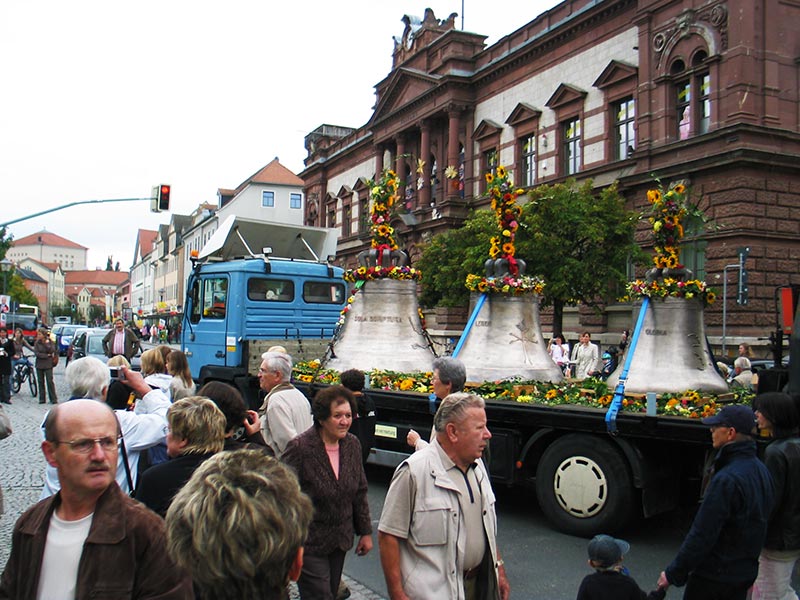 Die fertigen Glocken erreichten heute geschmückt den Weimar-Platz in Weimar und wurden von der Bevölkerung der Stadt im großen Geleit zum Herderplatz geführt. Die Bilder sprechen für sich.|