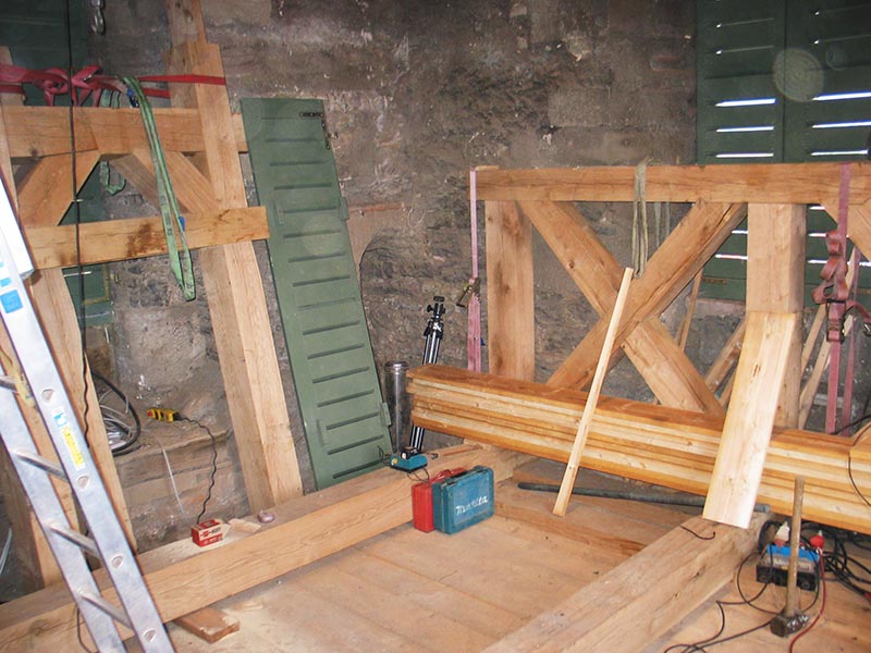 Nun ist der Glockenstuhl montiert und die Fa. Willing kann nun die Glocken hängen und mit Klöppel und Läutewerk komplettieren.
